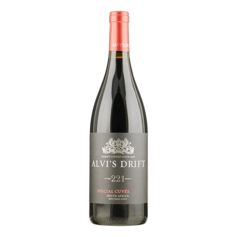 De Alvi's Drift 221 Special Cuvee 2021 heeft een prachtige diep robijnrode kleur. In de neus komen geuren vrij dvan rijp fruit zoals pruimen en kersen aangevuld met zoethout en kruidige accenten. De smaken van deze wijn zijn evenwichtg tussen fruitigheid, van pruimen en bessen, en met stevige maar zachte tannines. De afdronk is heerlijk lang met een aangename fruitigheid.