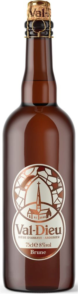 Val-Dieu Bruin is gekleurd. Het aroma is meer uitgesproken, met een koffie/mokka karakter. De mokka smaak zal geleidelijk verdwijnen om ruimte te maken voor een smaak van geroosterde mout die niet te neutraal noch te sterk is.